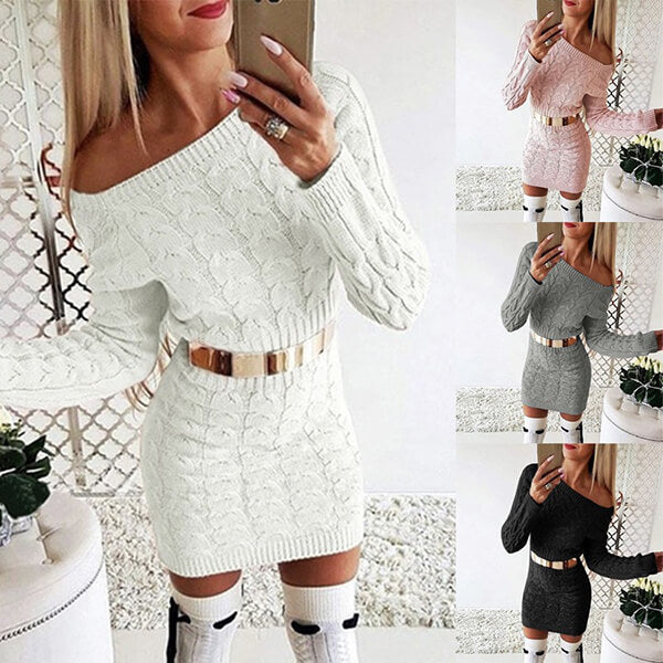 Hosszú ujjú őszi-téli egyszínű divatos ruha